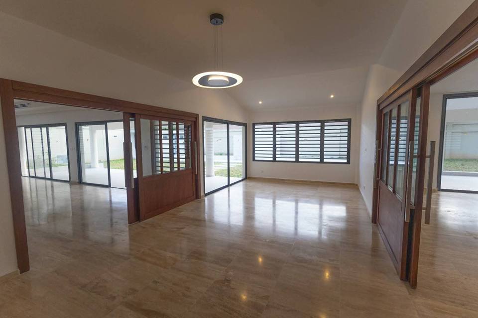 Au rdc 3 grands salons dont une salle a manger, 2 grandes terrasses, 1e chambre amie avec dressing et une salle d'eau, 1e cuisine européenne et 1e africaine.