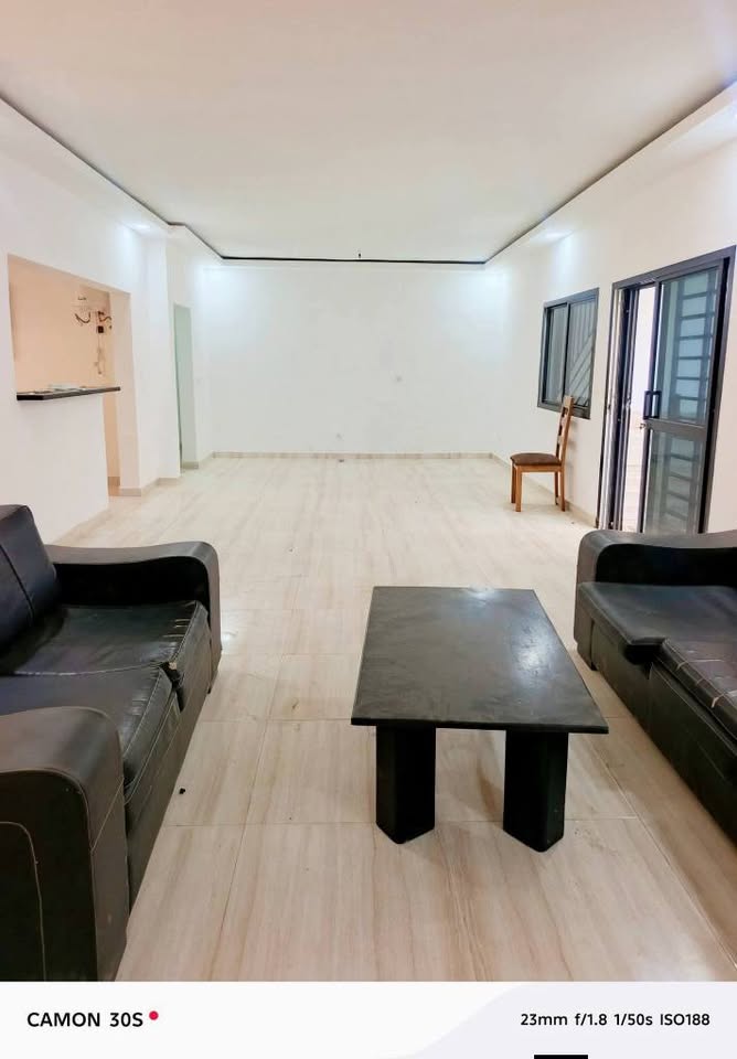 À l'entrée, vous découvrirez une cour avant, suivie d'un grand salon agrémenté d'une baie vitrée. La villa dispose d'une belle cuisine américaine ouverte sur le salon, ainsi qu'une cuisine africaine située à l'arrière.