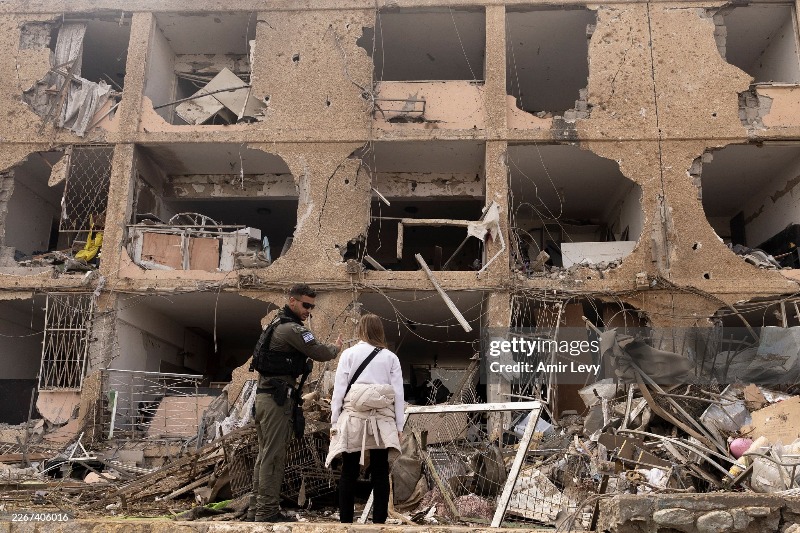 Dimona en Israël le 22 mars 2026. Un missile balistique tiré depuis l'Iran, a fait plus de 50 blessés parmi les habitants.